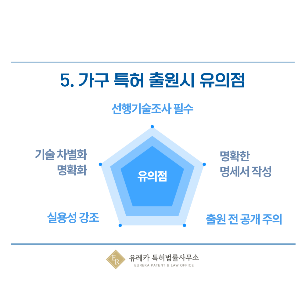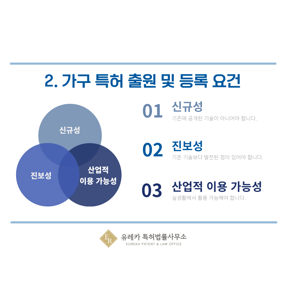 기존 가구와 비교해 어떤 점이 새롭고 유용한지 분명히 드러나야 특허로 인정받을 수 있습니다.