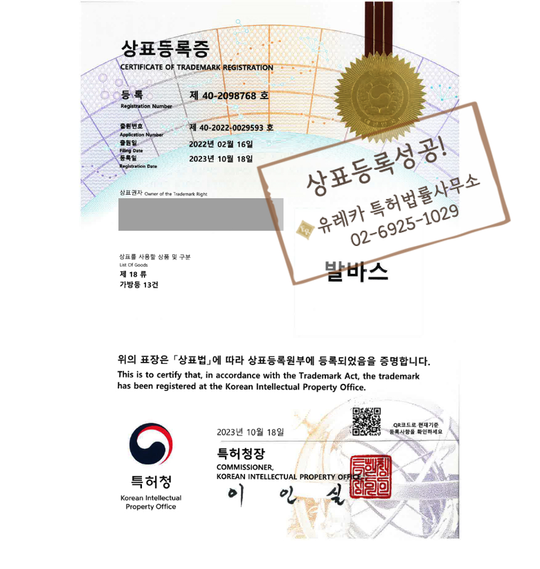 유레카 특허법률사무소에서는 1:1 가방 상표등록 관련 무료 상담을 해드리고 있습니다.