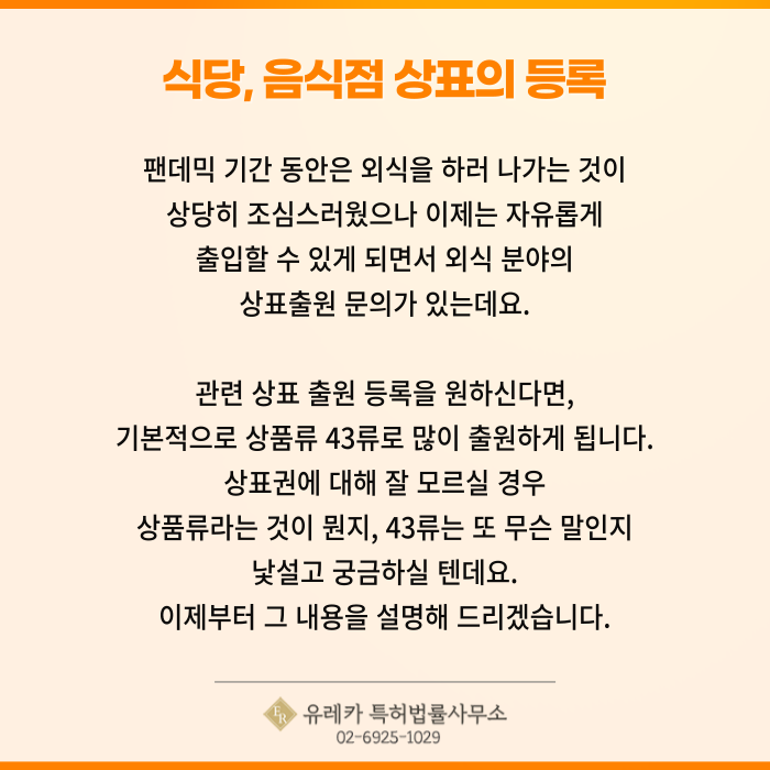 식당과 같은 외식 분야의 상표출원 문의가 있는데요.