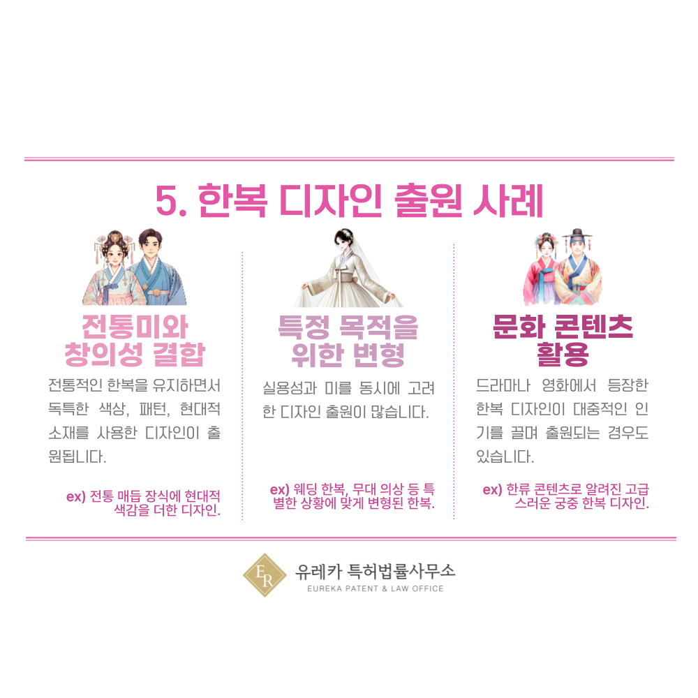 드라마나 영화에서 등장한 한복 디자인이 대중적인 인기를 끌며 출원되는 경우도 있습니다.