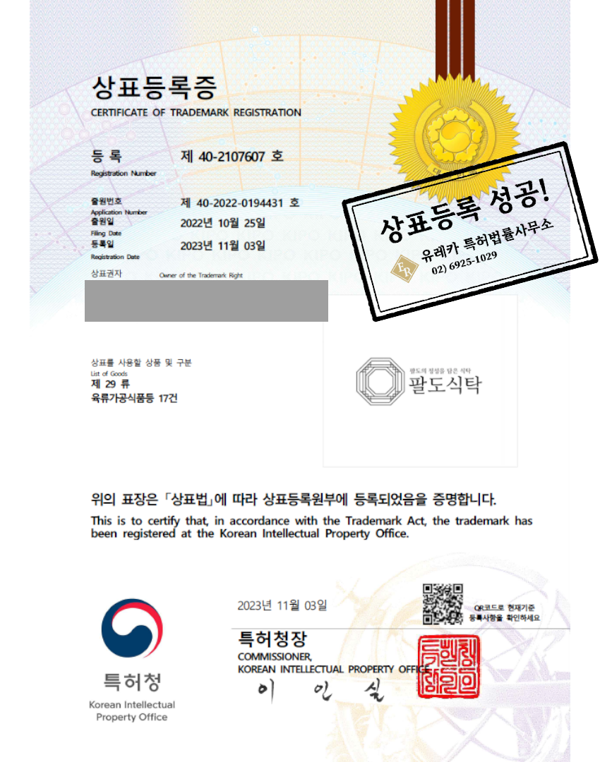 유레카 특허법률 사무소에서는 다양한 가공식품 상표등록 사례가 있습니다.