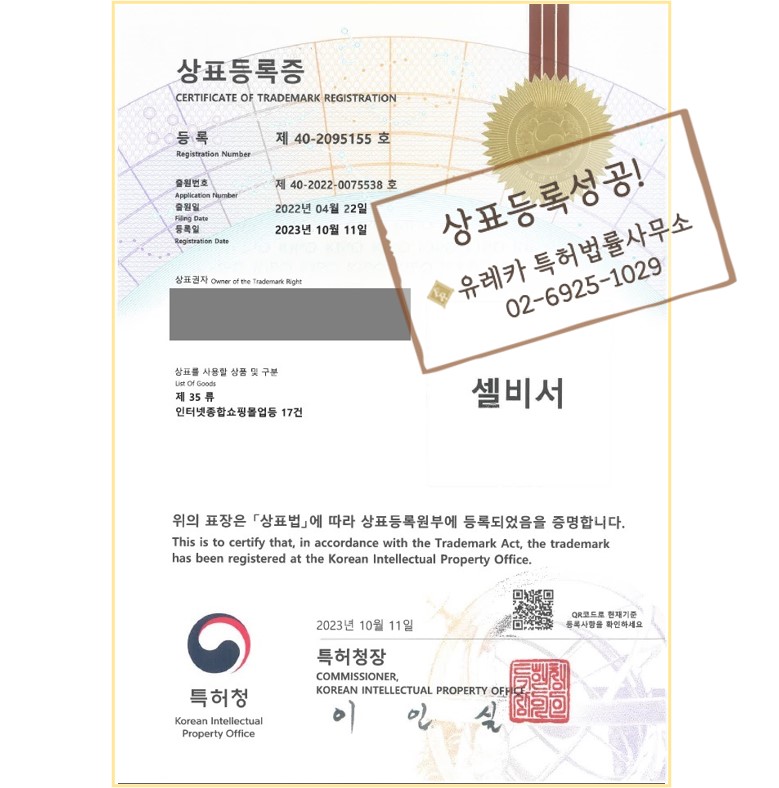 광고, 창업, 기업, 세무, 사업, 스마스스토어, 인터넷쇼핑몰 "셀비서 (35류)" 유레카에서 상표등록 완료!