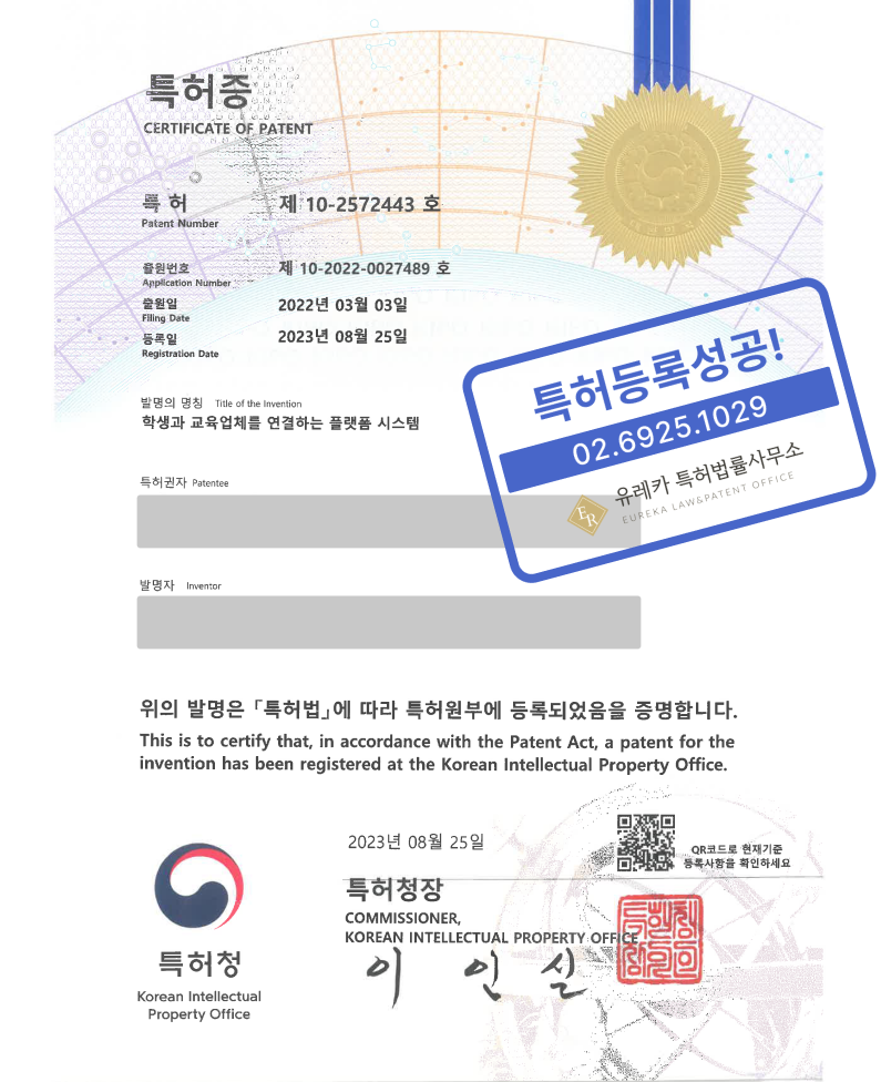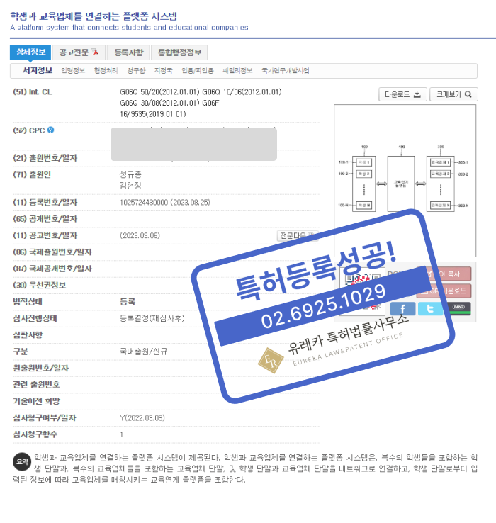 교육연계 플랫 폼을 포함하는 것을 확인하고 이를 기반으로 특허출원을 진행해 성공시킨 사례입니다!