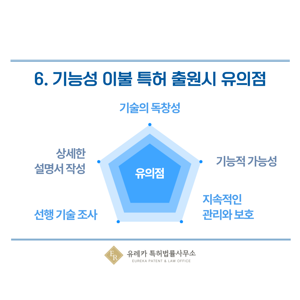 특허는 새로운 기술에만 부여되므로, 기존에 존재하는 기술과 비교해 독창적이고 차별화된 기능을 갖추어야 합니다.