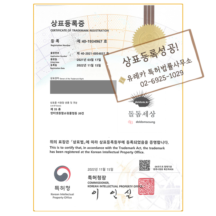 돌돔세상이 유레카 특허법률사무소에서 상표등록 완료되었습니다.