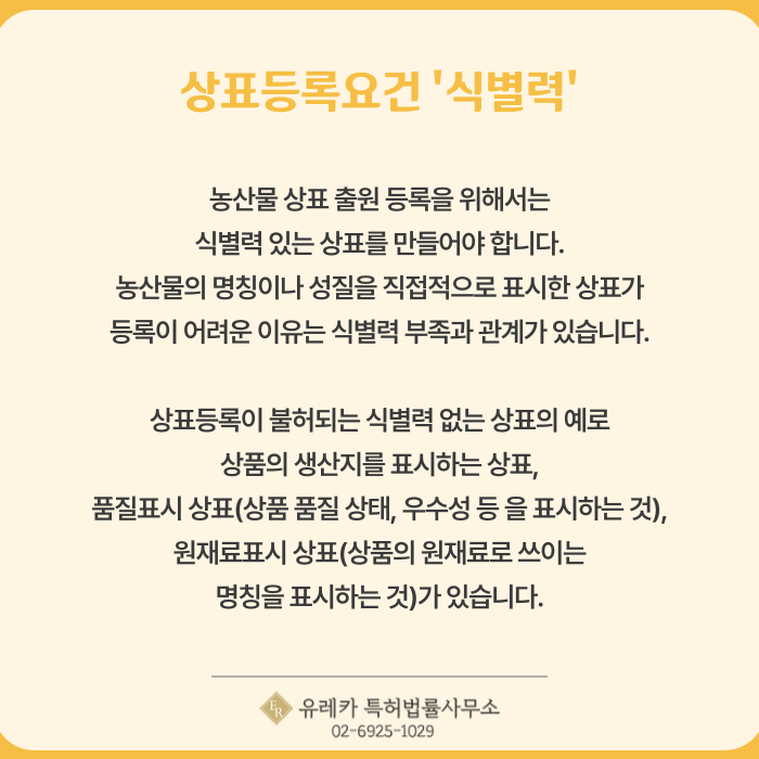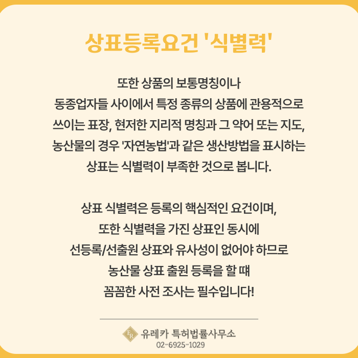 농산물 상표 출원 등록 식별력을 검토하세요