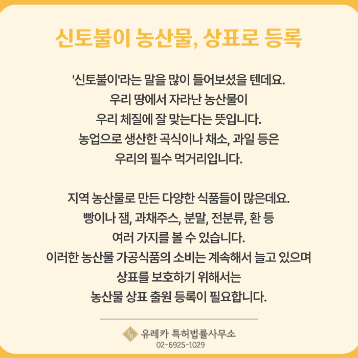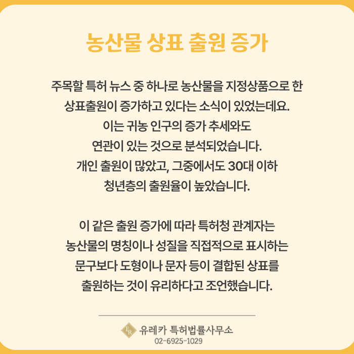 농산물 상표 출원 등록이 필요합니다.