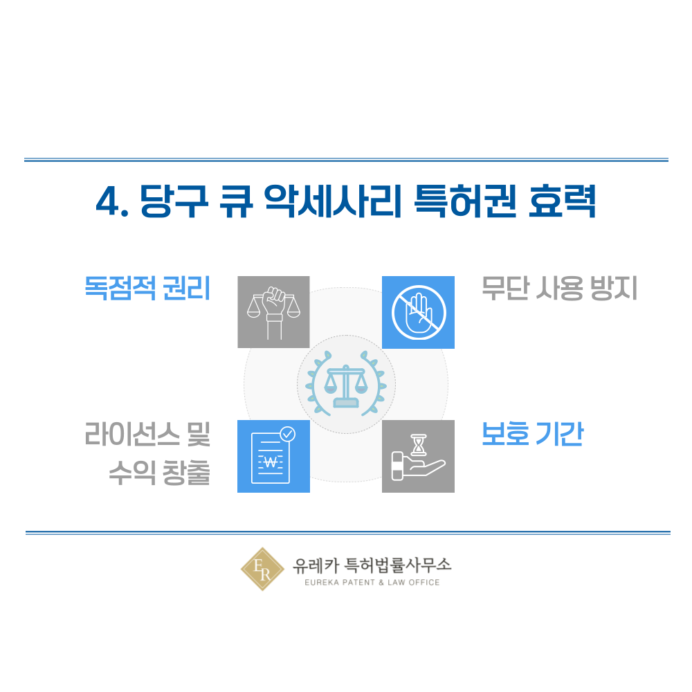 특허가 등록되면 해당 당구큐나 케이스 기술을 일정 기간 동안 독점적으로 만들고, 판매하고, 사용할 수 있는 권리를 갖게 돼요.