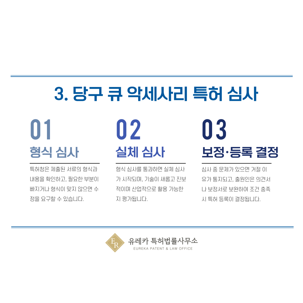 형식심사를 통과하면, 당구큐나 케이스 기술이 기존과 비교해 새롭고, 진보적이며, 실제로 쓸 수 있는지를 본격적으로 심사해요.