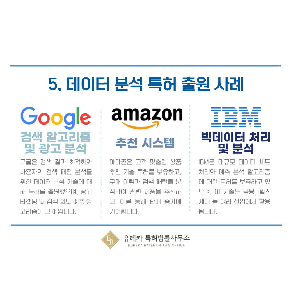 아마존은 고객 맞춤형 상품 추천을 위한 데이터 분석 방법에 대해 여러 특허를 보유하고 있어요.