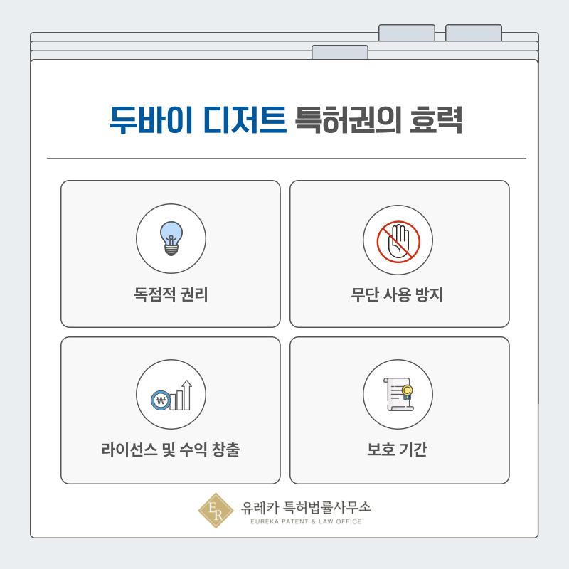 등록된 특허는 UAE 내에서 해당 기술을 독점적으로 사용할 수 있는 권리를 부여합니다.