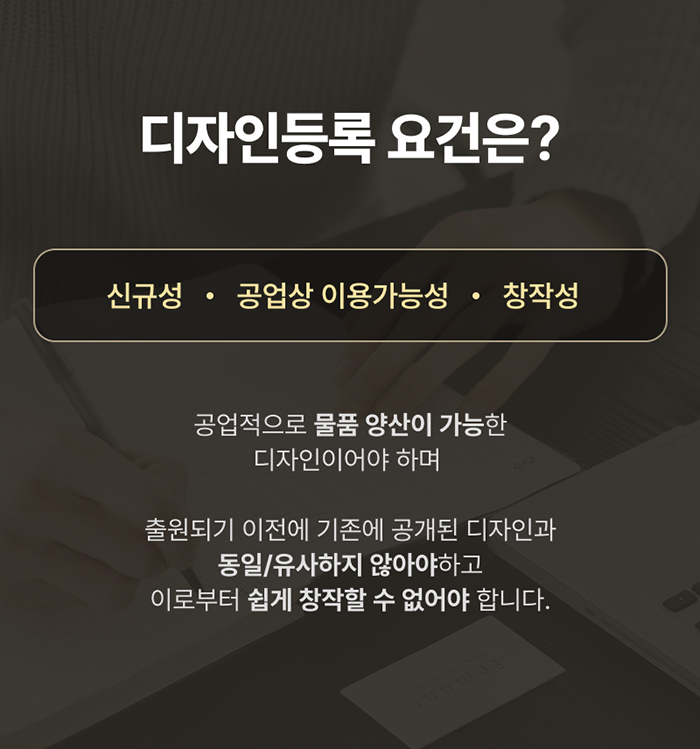 디자인등록요건에 부합하는 디자인만이 등록 가능합니다.