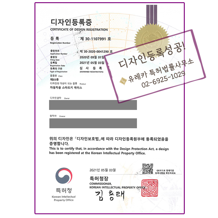 유레카에서는 디자인 전문 변리사와 1:1 상담이 가능합니다.