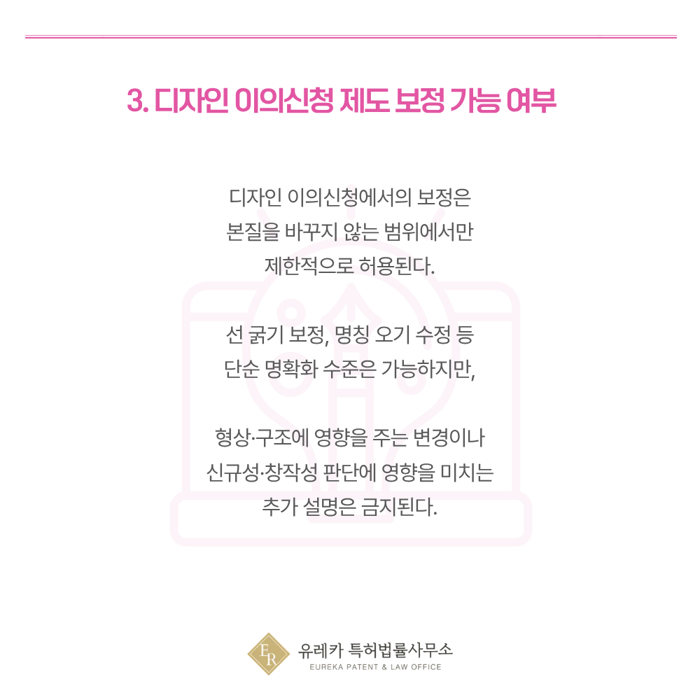 #디자인권 #유레카특허법률사무소 #디자인이의신청 #디자인보호법 #디자인보정 #요지변