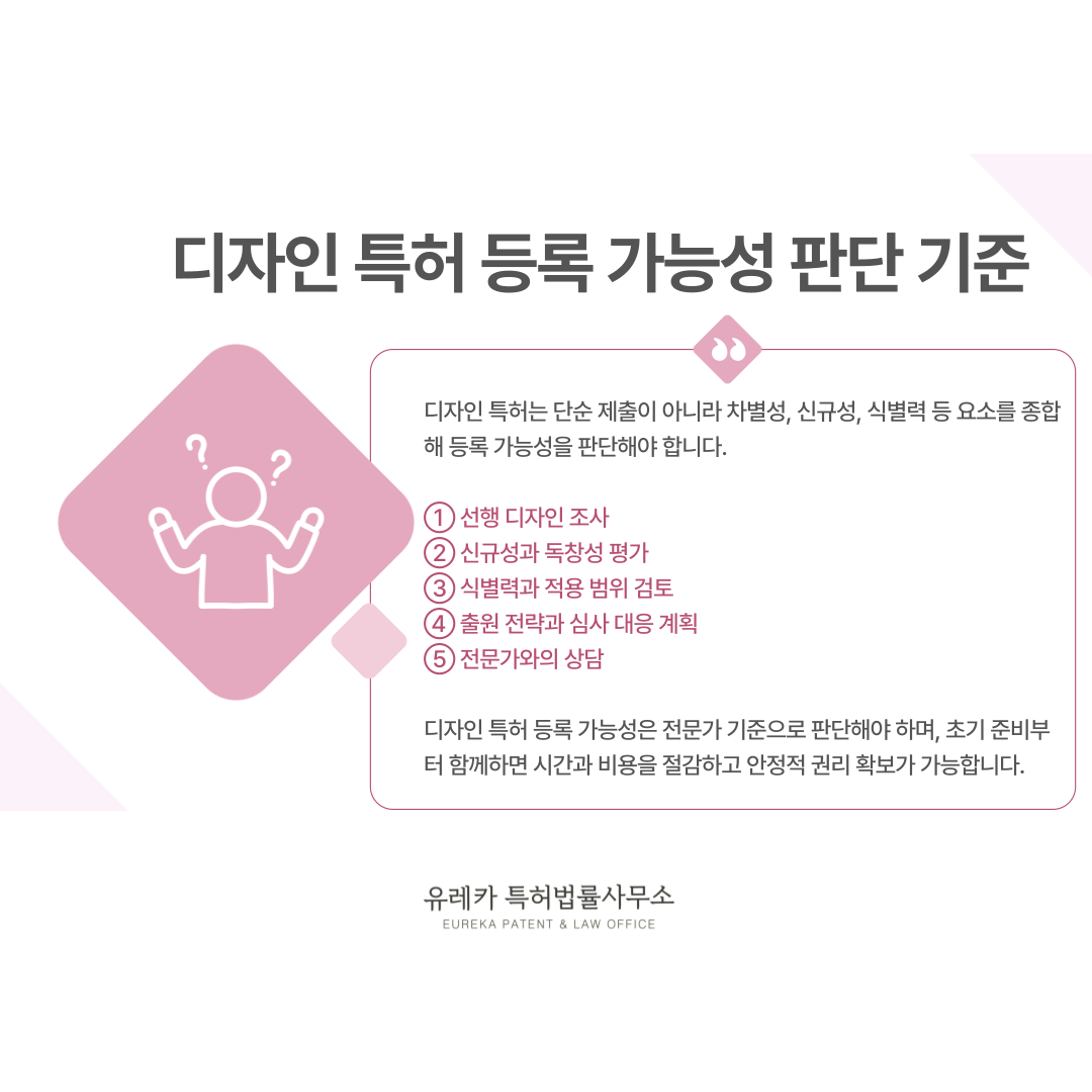 결국 디자인 특허 등록 가능성은 감각이 아닌 기준으로 판단해야 합니다.