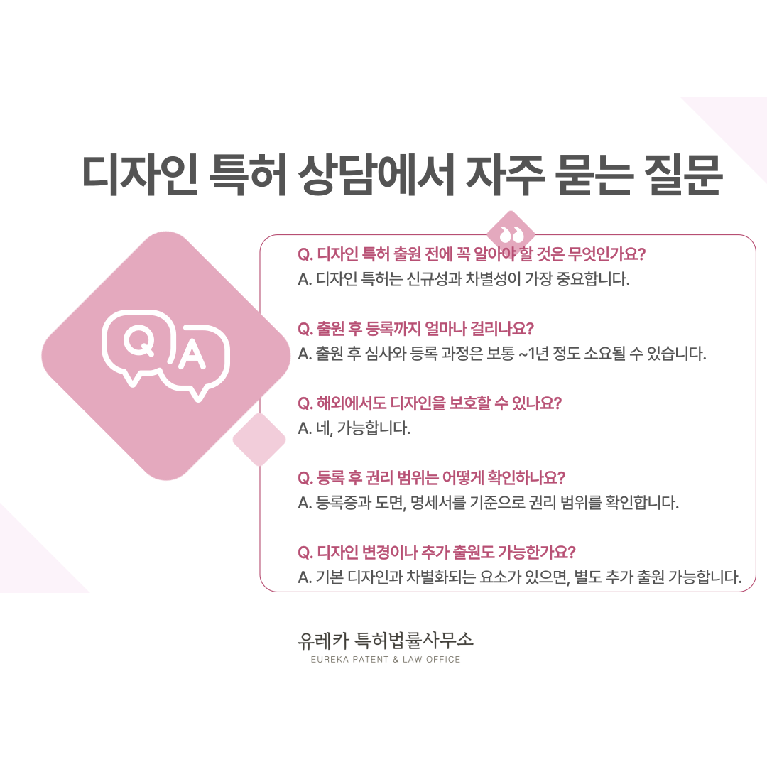 디자인 특허 상담을 진행하다 보면, 많은 분들이 공통적으로 궁금해하는 질문들이 있습니다.