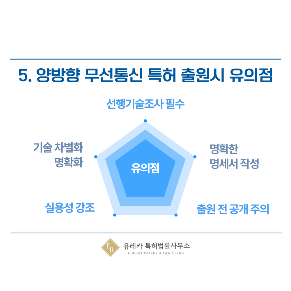 특허 심사에서 핵심은 기존 기술과 어떻게 다르냐는 거예요. 단순한 구조 변경이나 기능 추가만으로는 부족할 수 있으니, 통신 방식의 개선, 전력 효율 향상, 간섭 방지 기술처럼 기술적 효과와 구조적 차별성을 명확히 강조해야 해요. 차별성이 드러나야 특허로 인정받기 쉬워요.