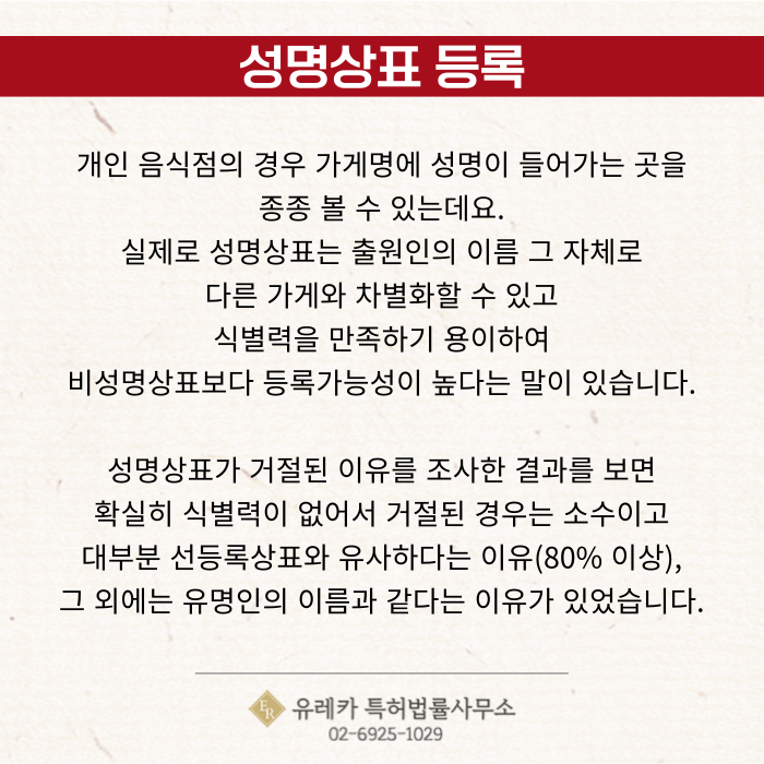 개인 음식점의 경우 가게명에 성명이 들어가는 곳을