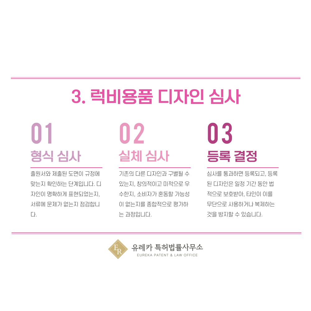 즉, 이 단계 이후 디자인은 단순한 외형이 아니라 법으로 보호받는 지식재산권이 됩니다.