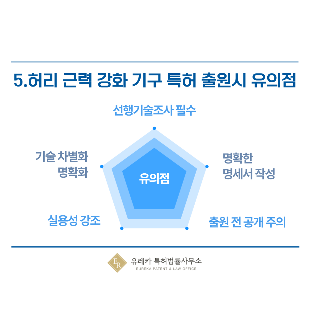 제품화가 가능한 설계인지, 운동 효과가 의학적·물리적으로 타당한지 등을 기술 설명 속에 자연스럽게 녹여내는 것이 설득력 있는 출원으로 이어져요.