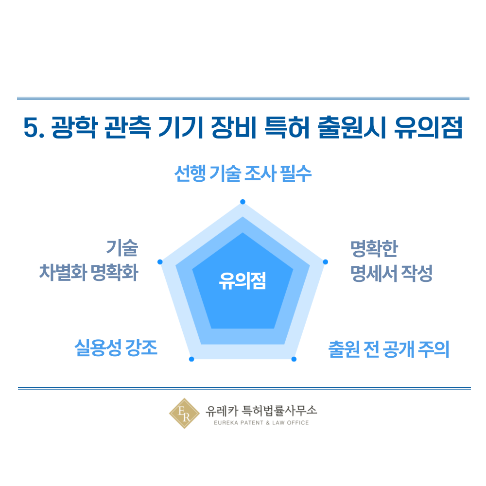 기존에 어떤 유사한 광학 기술이나 제품이 공개되어 있는지 미리 조사해서, 내 발명이 새로운지 확인해요.
