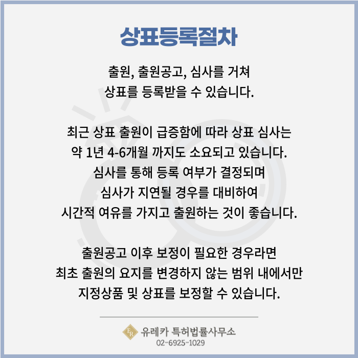 상표 심사는 약 1년 4-6개월 까지도 소요되고 있습니다.