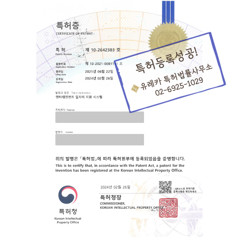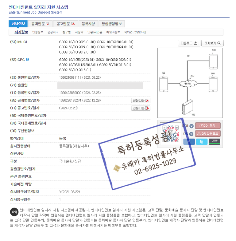 문화예술, 엔터테인먼트 "엔터테인먼트 일자리 지원 시스템" 특허등록완료!