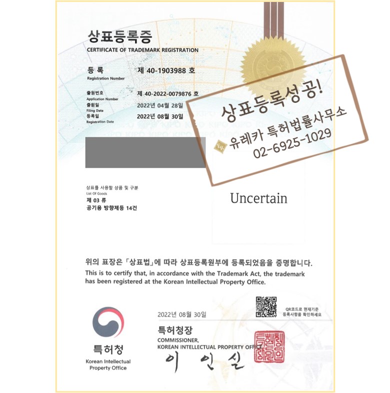 바디케어용 방취제 방향용 룸스프레이 상표등록성공 'Uncertain' 비의료용 바디케어제 상표등록고민 유레카상표에서 해결