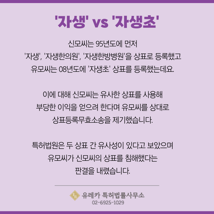 그리고 유모씨는 08년도에 '자생초' 상표를 등록하여