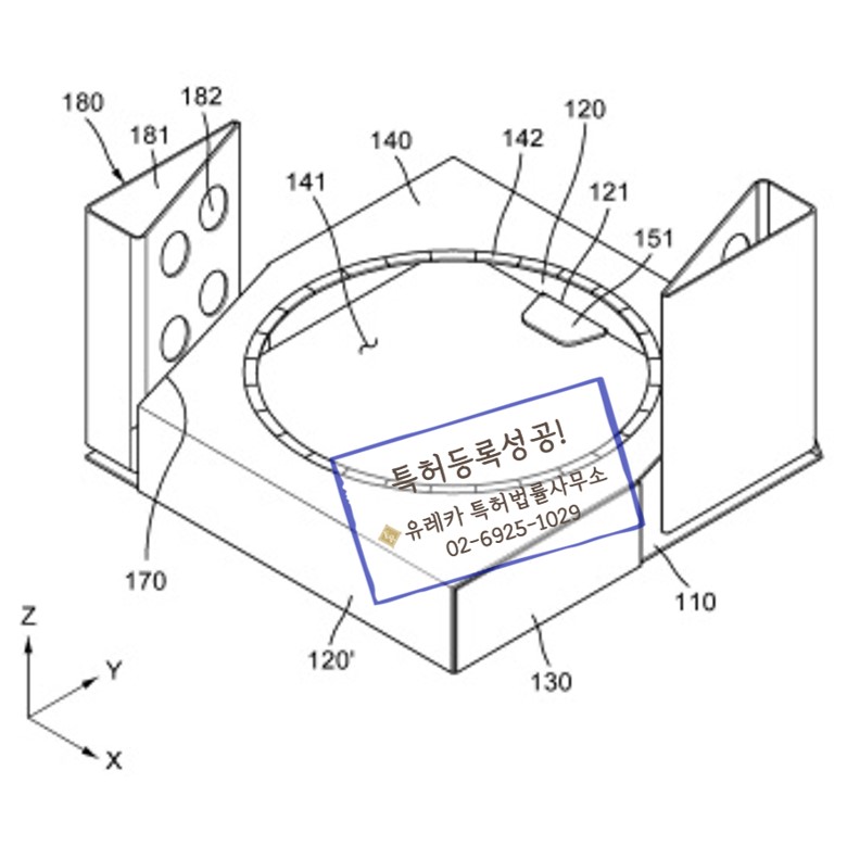 케이크를 수용하는 지지공이 관통된 지지판과, 지지판의 Y축 방향 단부에서 Z축 반대방향으로 절곡형성된 하향 절곡판과,