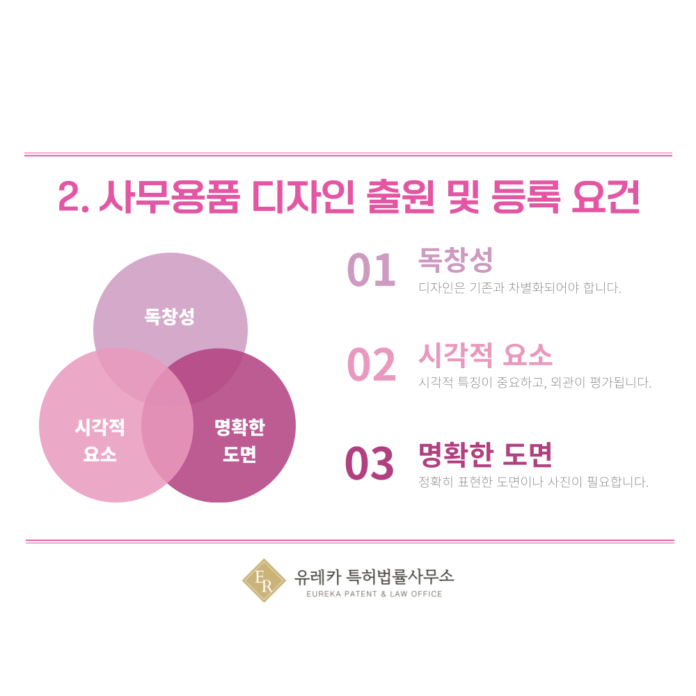 즉, 새로운 창작물이거나 기존의 디자인에서 독특한 변형이 있어야 합니다.