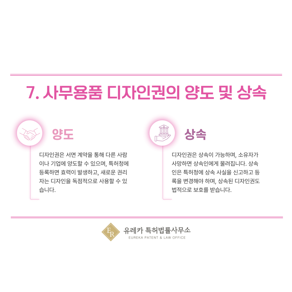 디자인권자가 사망하면, 그 권리는 법적으로 지정된 상속인에게 넘어갑니다.