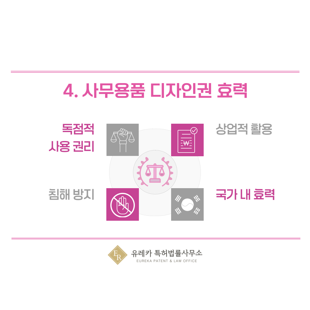 등록된 디자인은 법적으로 보호를 받으며, 독점적인 사용 권리가 주어집니다.