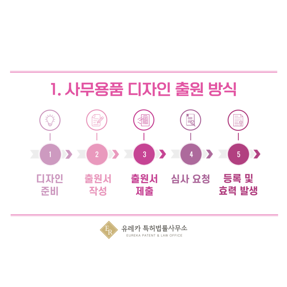 먼저, 출원할 사무용품 디자인을 정확하게 정의하고 도면 또는 사진을 준비합니다.