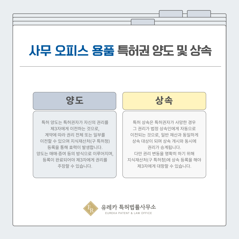 사무용품이나 오피스용품 관련 특허도 계약을 통해 권리를 이전하는 것이 가능합니다.