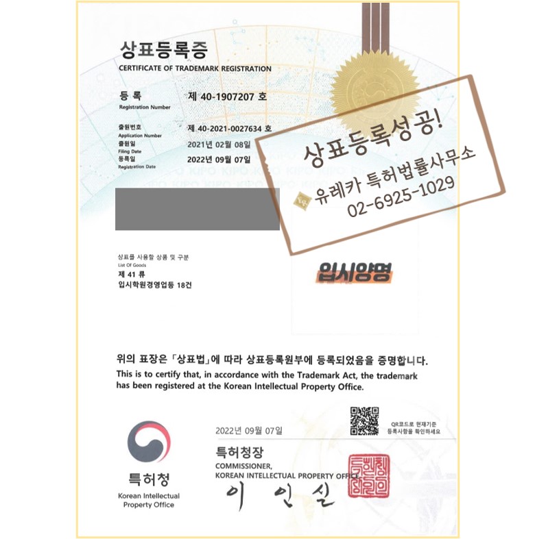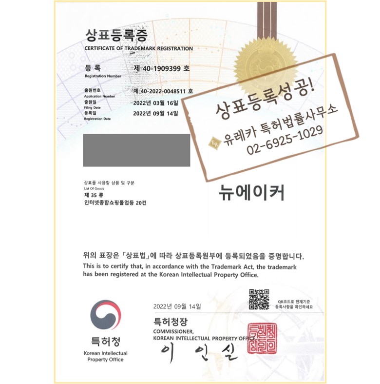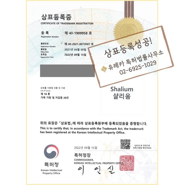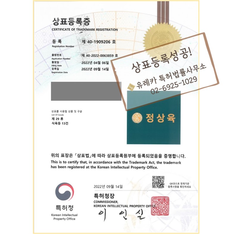 유레카상표의 전문 변리사를 통해 상표등록성공 - !
