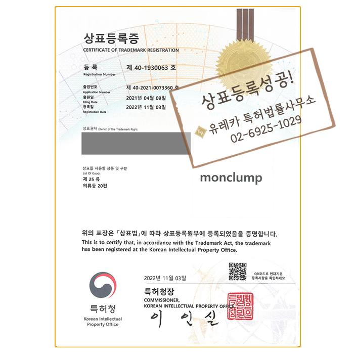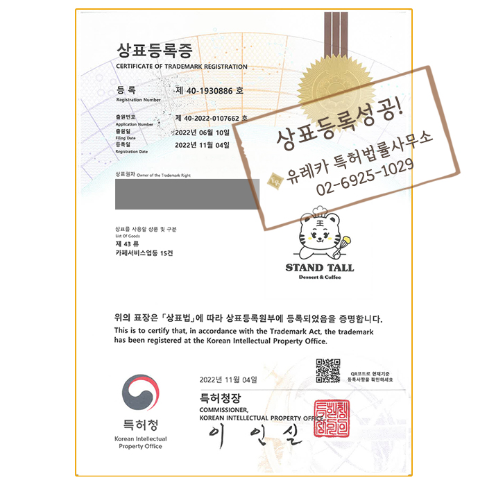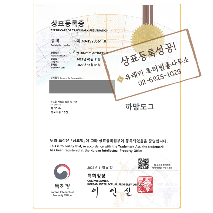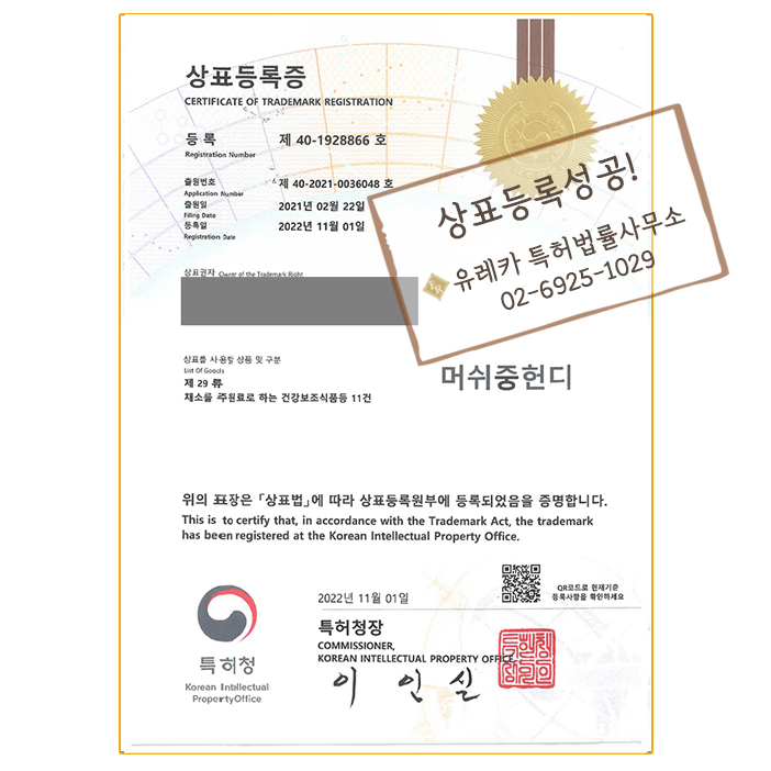 상표등록성공! 유레카 특허법률사무소 11월 넷째 주 상표등록사례