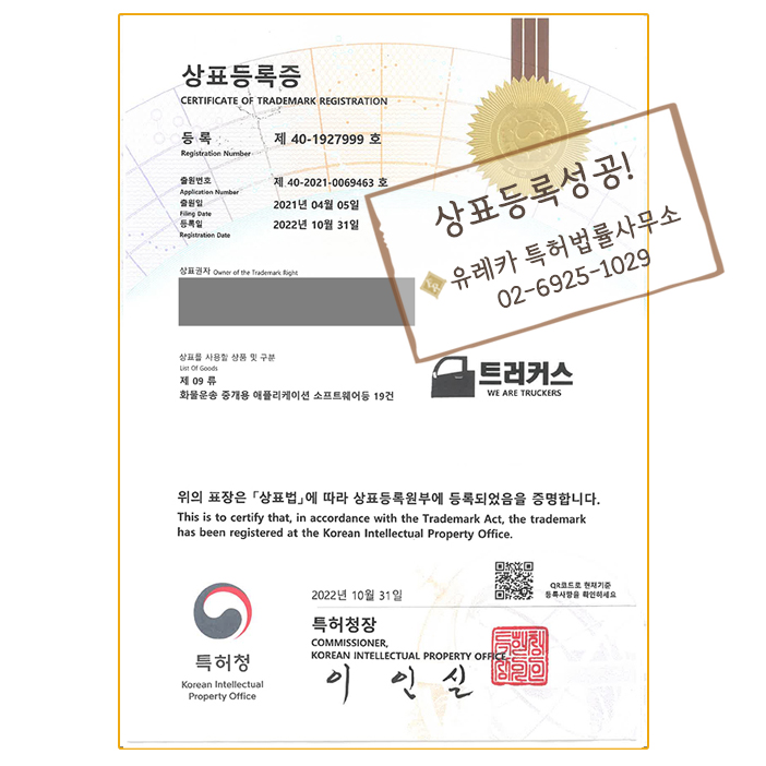유레카에서 상표등록 완료