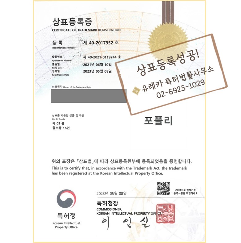 향수,바디케어 등 코스메틱 화장품 분야 상표등록을
