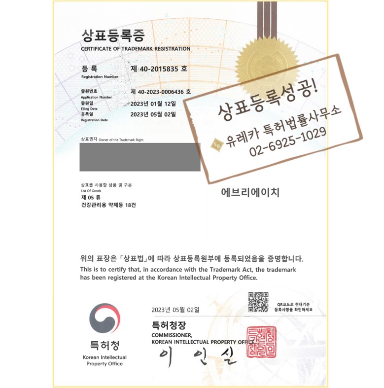 다이어트, 헬스, 미용, 영양제, 식이요법, 구강약제, 건강기능식품 "에브리에이치" 유레카에서 상표등록 완료!