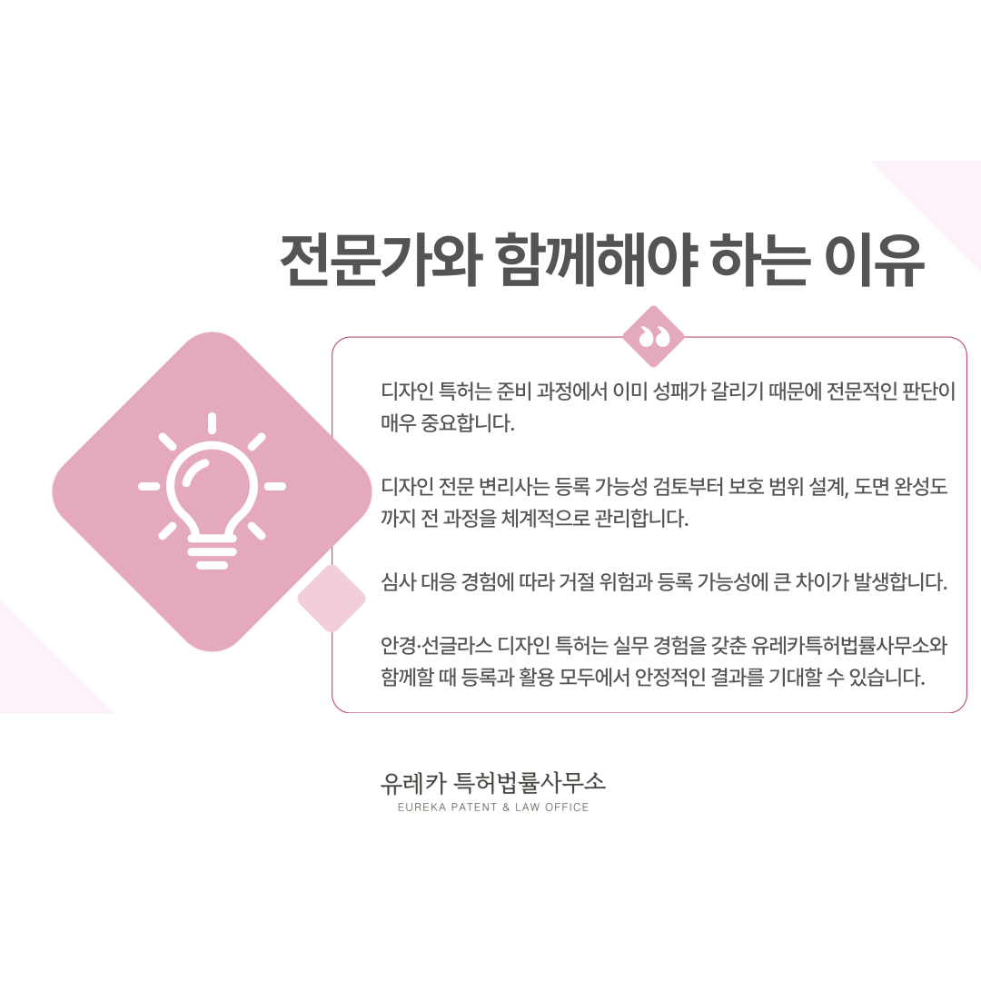 안경·선글라스 디자인 특허를 준비하신다면 디자인 심사 기준과 실무 경험을 모두 갖춘