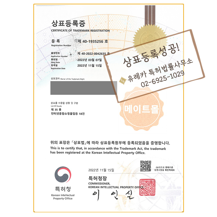 선반 수납함 상표등록 메이트몰 유레카에서 상표권 취득 완료!
