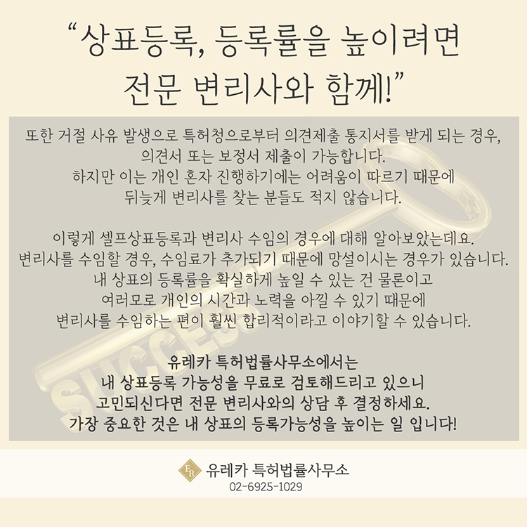 셀프로 상표등록을 하시는 분들의 상표등록 성공률이 현저히 낮은 것은 바로 이 때문이며