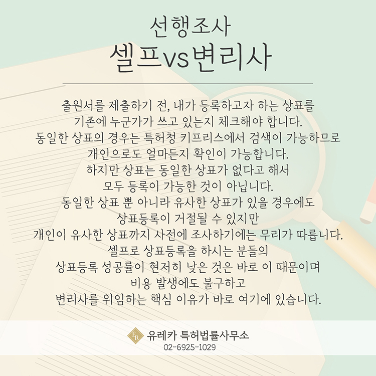 개인이 유사한 상표까지 사전에 조사하기에는 무리가 따릅니다.