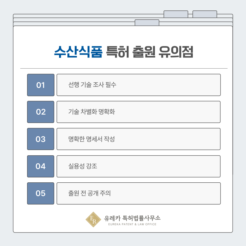 수산식품이나 수산가공품 분야의 특허 출원은 먼저 기존에 등록된 기술을 충분히 조사하는 것에서 시작됩니다.