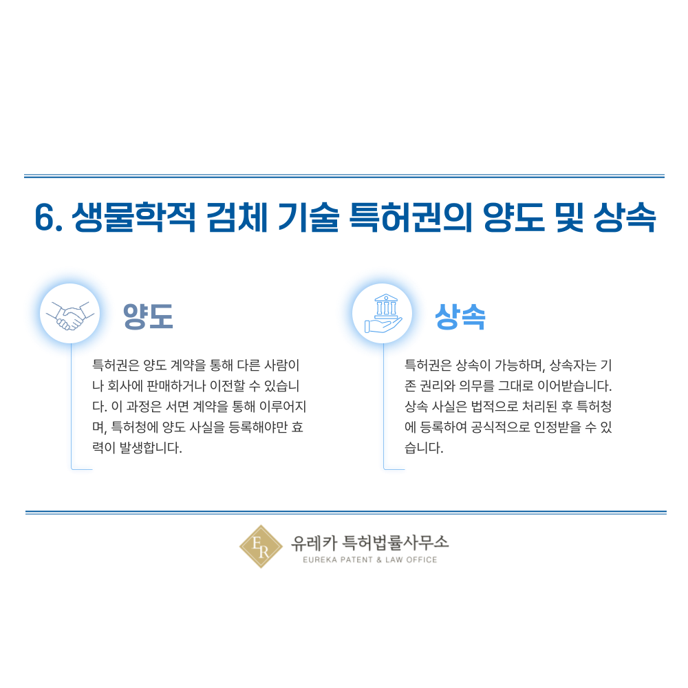 6. 수송배지, 운송배지, 수숑용 보존액, 검사용 운반액, 바이오샘플, 분자진단 특허권의 양도 및 상속