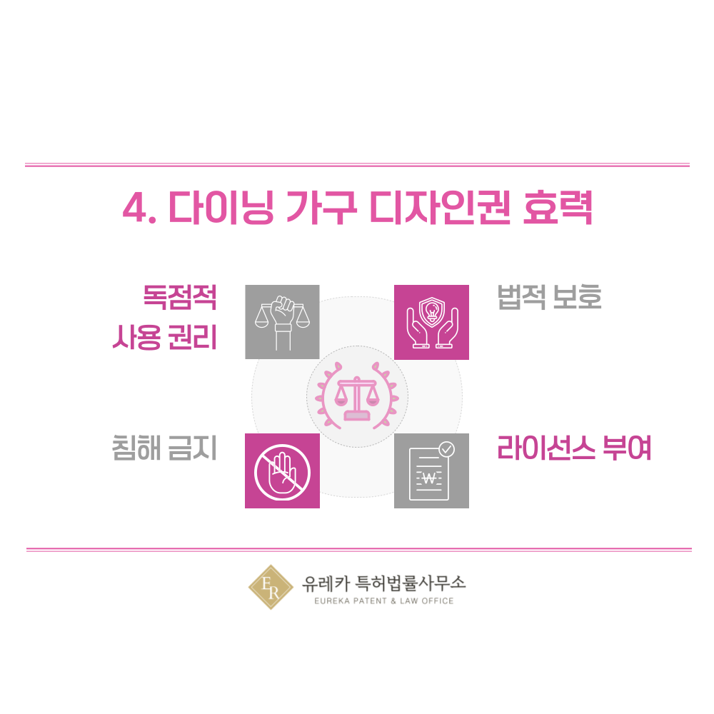 4. 다이닝 가구, 식탁, 벤치, 그릇장, 와인랙, 로청장 디자인권 효력