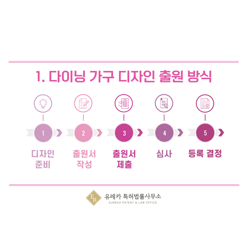 1. 다이닝 가구, 식탁, 벤치, 그릇장, 와인랙, 로청장 디자인 출원 방식