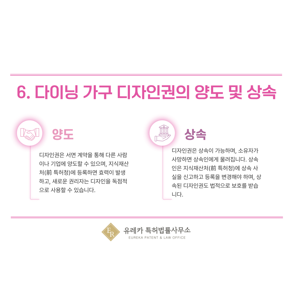 6. 다이닝 가구, 식탁, 벤치, 그릇장, 와인랙, 로청장 디자인권의 양도 및 상속