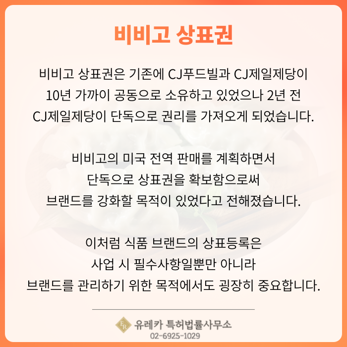 비비고 상표권은 기존에 CJ푸드빌과 CJ제일제당이
